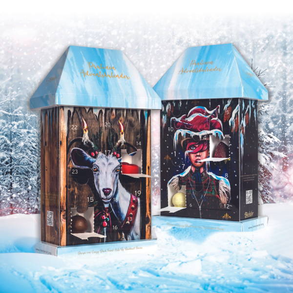 Böckeler brings traditional and artisanal Christmas items to life each year with a dash of contemporary flair. The Praline Advent Calendar offers 24 fine Böckeler praline and truffle creations, handcrafted with passion. The motifs on the front and back of the little house, designed by CRAZY BLACKFOREST ARTS artist Bernhard Hauns, make it an exclusive gift from their region.