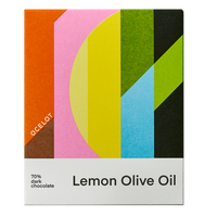 A stunningly smooth and fragrant dark chocolate bar generously infused with Puglian lemon olive oil. The oil is made at a family mill where they stone-grind whole fresh organic lemons along with the olives at harvest time, resulting in a perfumed, grass-green elixir that elevates our 70% dark chocolate to another level of deliciousness.
