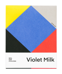 Ingredients: organic cocoa mass, organic raw unrefined cane sugar, organic cocoa butter, organic whole milk powder, organic violet flavour oil(<1%)